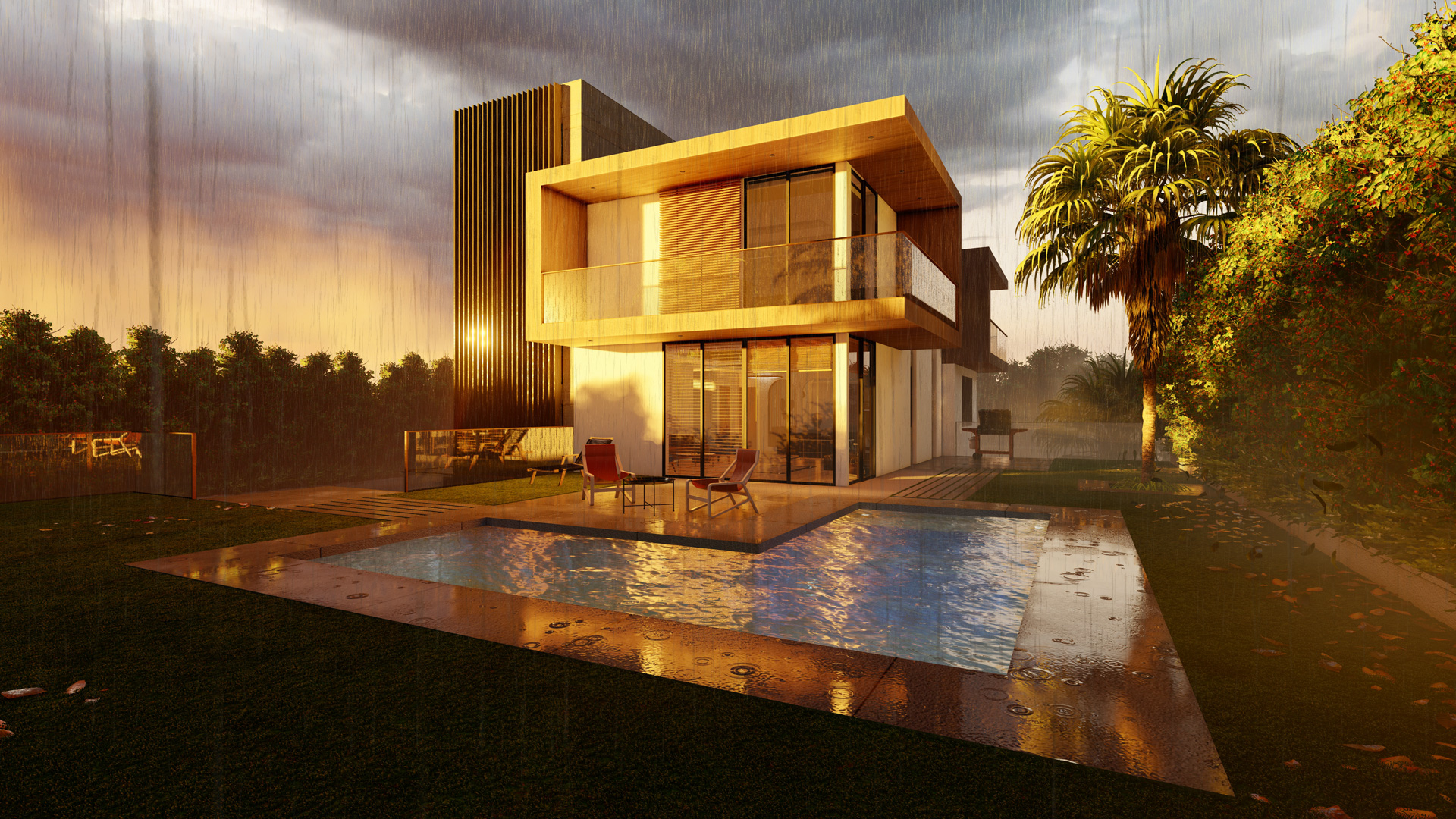 This house embodies a modern and sustainable approach with an emphasis on clean lines and geometric volumes that combine form and function, minimizing the home's cooling load and enhancing its overall energy performance. The building’s layout is thoughtfully designed, featuring large glass windows that facilitate natural light penetration, reducing the need for artificial lighting and contributing to energy efficiency. The cantilevers and the vertical louvered elements serve as a smart bio-climatic feature, offering sun shading to control solar heat gain while also allowing for passive cooling through natural ventilation The open outdoor spaces and terraces encourage social interaction and a connection with nature, promoting a holistic living experience that's in harmony with sustainable principles. The landscaping design presents a sophisticated blend of formality and naturalism, The choice of native plant species that require less water and maintenance.